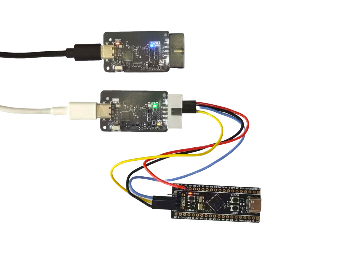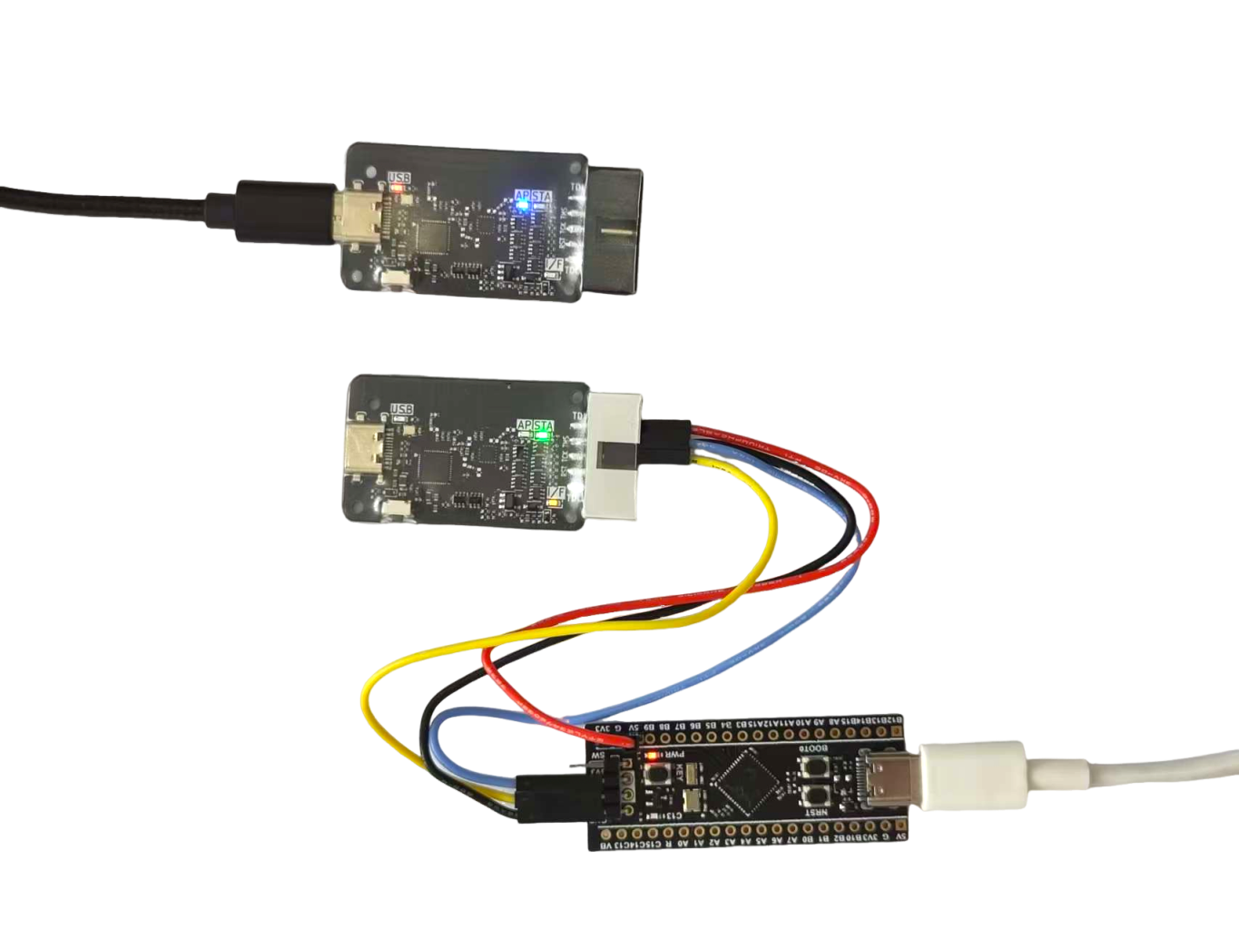图中调试器一个为AP模式,不接目标板;另一个为STA模式,USB接电源、调试口接目标板