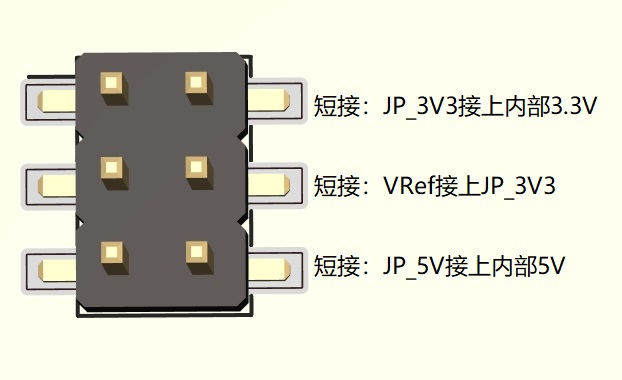 接口,支持外部参考电压,也支持内部跳线帽短接3.3V单个调试器可作为有线调试器使用