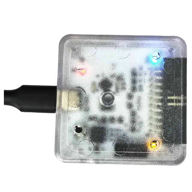 板上红灯、黄灯亮起,板上蓝灯作为连接指示状态灯,未连接时闪烁、已连接后常亮